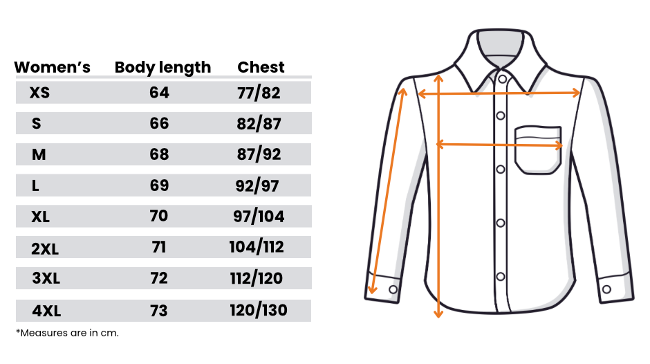 - Women: XS - 4XL